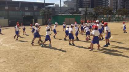 月曜日の朝の時間にドッヂボールをします。ボールに慣れる練習をしました。