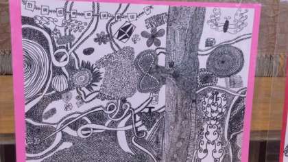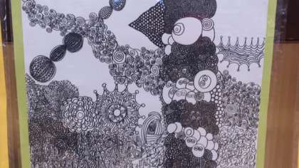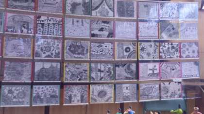 6年生は線描アートを作成しました。