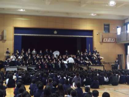 今日は6年生が音楽交流会で発表した合唱合奏を全員に披露しました。