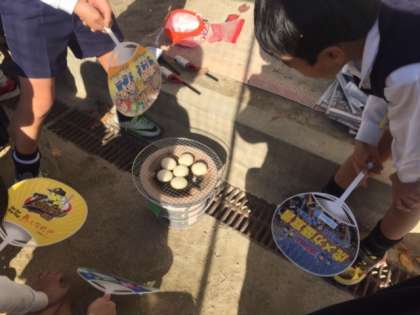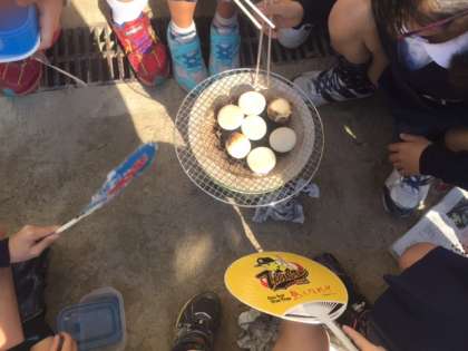 火を炭で一生懸命おこして、お餅を焼くことが出来ました。