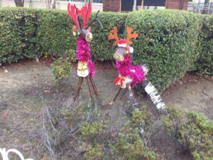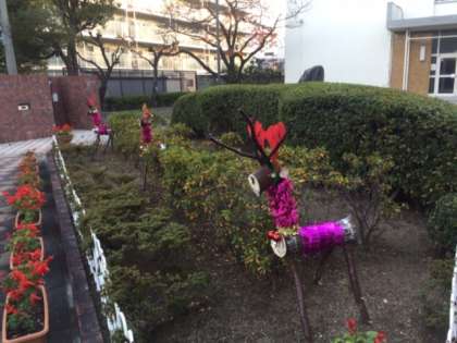 正門から入ったところの花壇のシカですが、そろそろ「クリスマスモード」です。