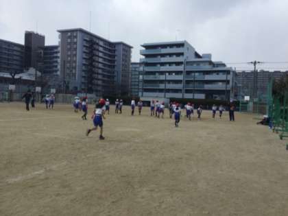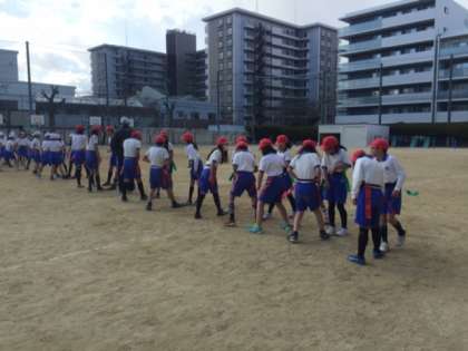 5年生は今日から3週間に渡って体育でタグラグビーをします。