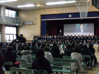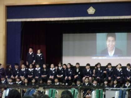 1月27日(月)5時間目に学習参観を行いました。子ども達の頑張っている姿をご覧いただけたでしょうか。写真は、6年生の群読、合奏、合唱のあとの、感謝の気持ちを一人ずつ発表しているところです。2月26日(水)に今年度最後の学習参観・懇談会を行います。ご予定ください。