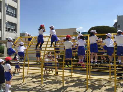 体育では、みんな1年生の体を支えてあげたり、「どこまで登れる?」と優しく聞いてあげたりしていました。