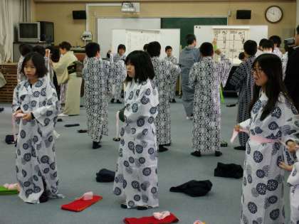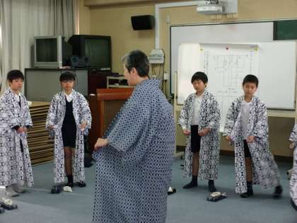 5年生は、着物の着付けを学びました。自分で、きちんと姿勢を正して、浴衣を着ることができたでしょうか。5年生にはあと2回、来てもらうことになっています。最後には茶の湯のお作法もしていただこうと考えています。