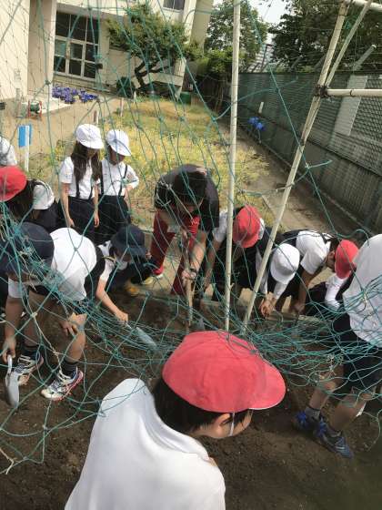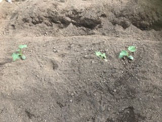 先週の金曜日にヘチマを植えました。土を耕し、腐葉土を混ぜ、ふかふかにしました。しかし、今朝水をやりにいくと・・・。残念ながら1株が茎から折れて枯れていました。残りの9株を守りながら成長を見守りましょう!