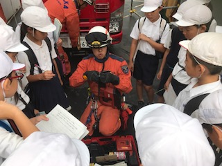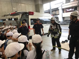 6月30日(金)小雨の中歩く態度も立派に4年生は城東消防署の見学へ行きました。現地では救急車が出場するなど臨場感もあり、教科書や資料集には載っていないことを見聞きし体験することができました。来年の3月に新庁舎の完成だそうで、またみんなで行きたいねと話していました。将来、消防士になりたい人?と聞かれ10数名の児童が手を挙げていました。地域の安全と人々の生命や財産を守るとても素晴らしいお仕事の一つですね。