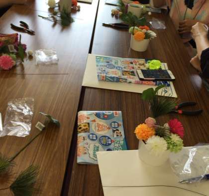 今日は成人教育委員主催の「和のフラワーアレンジメント作り」の講習会でした。