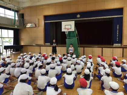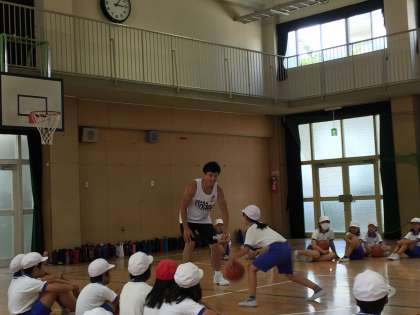 大阪エベッサのみなさんにバスケットボールの授業をしてもらいました。