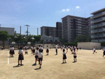 校庭で元気よく遊んでいます。