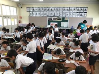 7月18日(火)の3、4時間目に4−1と3−1、4−2と3−2がそれぞれ交流会をおこないました。お題は、「4年生が1学期に校外学習で学んできたことをまとめた新聞を使って3年生にわかりやすく伝える!」でした。お互い真剣に話したり、聞いたりする姿はとてもすてきでした。また、3年生からのパワーアップカードを見て、喜んでいる4年生がたくさんいました。2学期以降も続けていこうと思います。