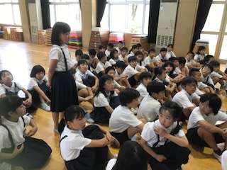 終業式後に、7月の生活目標「自立するために、先を見通して、意識を高めて行動する」のふりかえりを講堂でしました。そこでは、6年生から5年生へ林間学舎へのエールソングの贈り物がサプライズがあり、4年生も聞かせていただきました。子どもたちは「来年自分たちも行くんだ!」という気持ちが高まったようです。