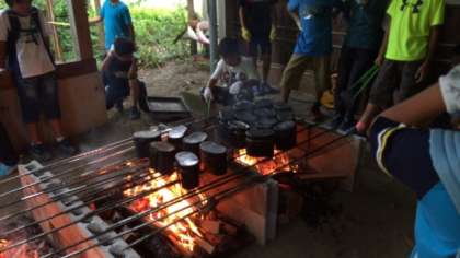 いよいよ飯盒炊爨とカレー作りです。