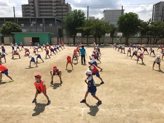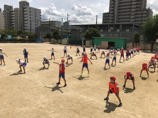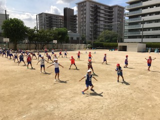 木曜日の練習では、体育館から出て、広い運動場での練習を行いました。