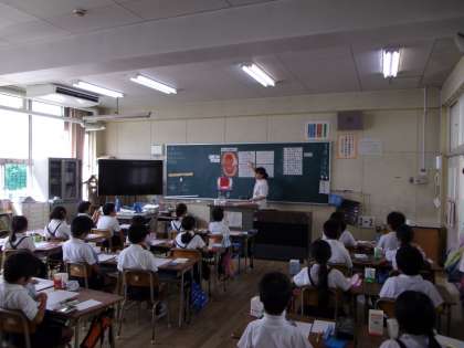 歯科衛生士の先生に、歯みがき指導をしていただきました。歯を染め出して、みがき残しの歯垢がないかを調べました。ていねいな歯みがきをして歯垢をとり、むし歯にならないようにしましょう。