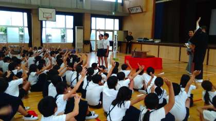 講談師の方がきていただき、みんなの前で演じていただきました。