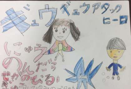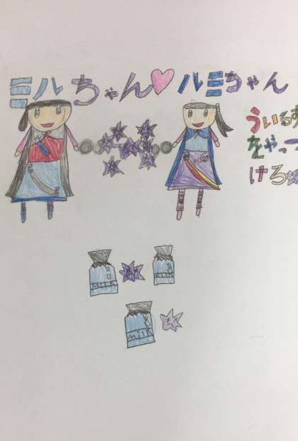 牛乳を飲むことで健康な身体をつくるというコンテストがあって1年生が描きました。