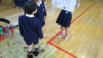 今日の2時間目、1年生は、2年生のおもちゃランドに招待されました。