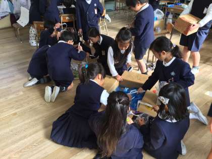 事前準備として、おもちゃを作り、1年生が分かるようにおもちゃの遊び方・ルールを説明する練習をしました。