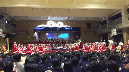 今日はクリスマスのプレゼントで大阪桐蔭高校吹奏楽部の皆さんにお越し頂き、演奏会をやって頂きました。