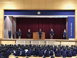 3学期の始業式。4年生からは代表の6名が、2学期までの頑張りと、3学期に頑張りたいことを堂々と発表してくれました。