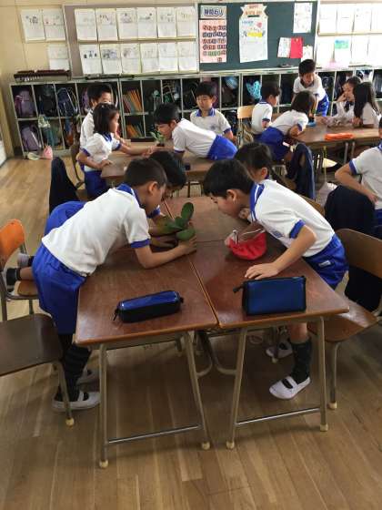 植える前に「何の野菜だと思う?」「どこから次の葉が生えると思う?」と投げかけると