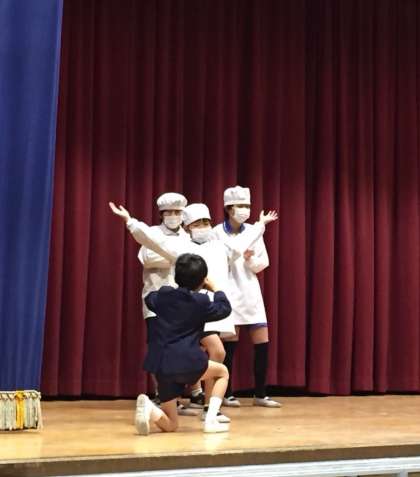 今日の児童集会では、毎日給食を作っている調理員さんへ日ごろの感謝の気持ちを伝えることができました。