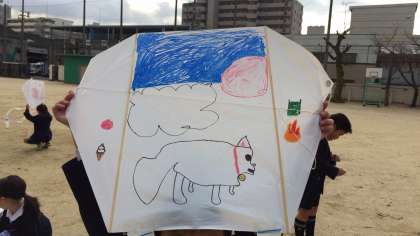 少し前ですが、一年生が凧あげをしていました。