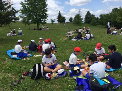 お弁当をおいしく楽しく食べた後(早朝からのお弁当作りありがとうございました!)、学校で作っていったフリスビーで遊んだり、クラス遊びをして過ごしました!