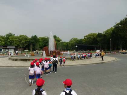 サンサンと照らす太陽の下、1年生ははじめての遠足でした。