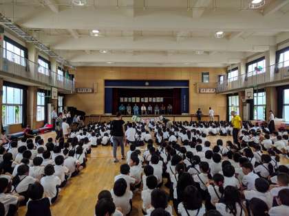アフリカ、アジア各地から来られた8名の方が来られ、子どもたちと交流しています。