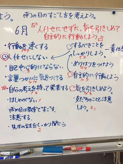 今日5月の振り返りと6月の学年目標を決めました!