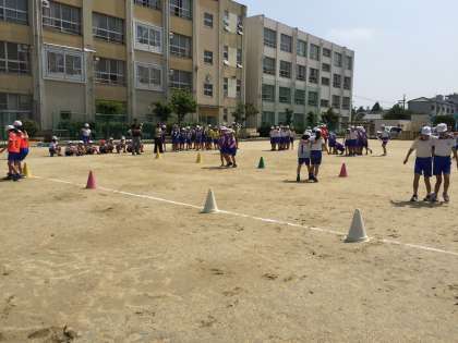 土曜授業の1時間目に6年生主催で「リレー」と「二人三脚」をしました。