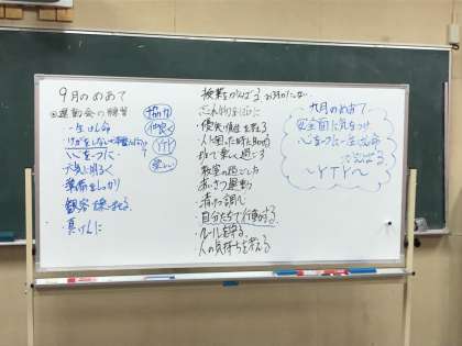 学年集会では、自分たちで意見を出し合い、学年の8・9月のめあてを決めました。