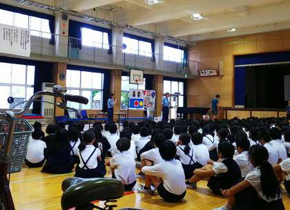 本日、2・3時間目に、城東警察の方々にお越しいただき、交通安全指導を行ってもらっています。