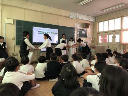 始まる前は少し緊張している子が多かったですが、4年生を前に張り切って発表することができていました。4年生も行儀よく、楽しんで発表を見てくれていました。