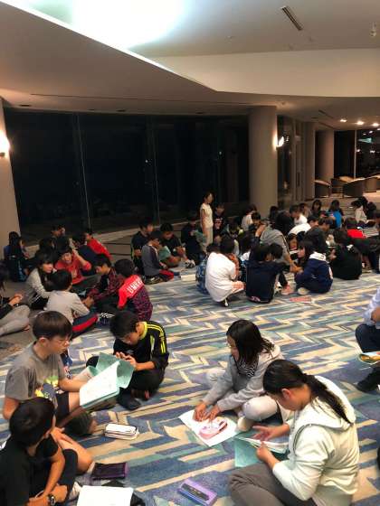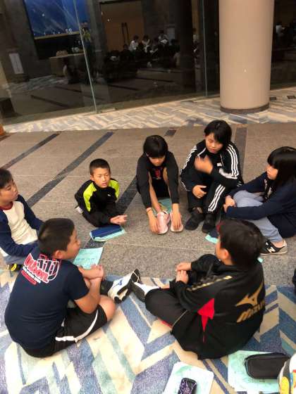 1日の反省を活動班でしています。今日は楽しく過ごせました。