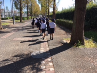 学校から鶴見緑地公園に、秋のものを見つけに行きました。
