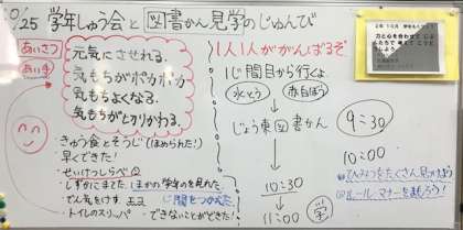11月も、10月と同じく全校遠足や作品展をみんなで「力と心をあわせて 自分たちで考えてこうどうしよう」でいきます。