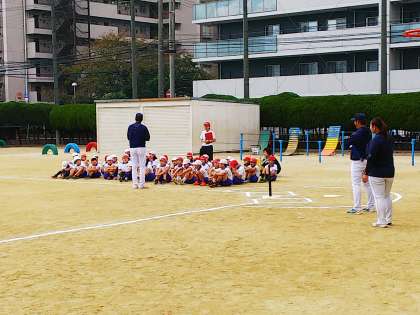 元オリックス選手の塩崎コーチ、大久保コーチ、元女子ソフトボール日本代表の乾コーチ、そして小澤トレーニングコーチの4名が来校されて、Tボールの授業をしてくれました。
