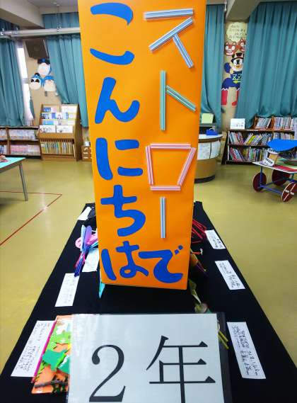 2年生の作品展は3階・図書室で、4年生と共同開催です。