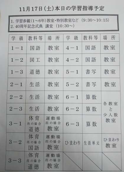 11月17日(土)は2時間目が参観授業となります。