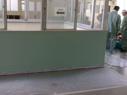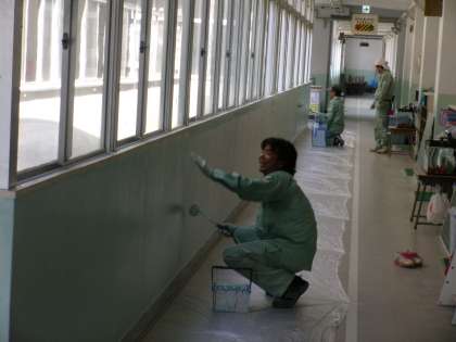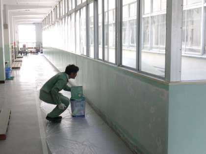 管理作業員さんが合同作業として、2階と3階の廊下の壁をきれいにペンキで塗ってくれました。