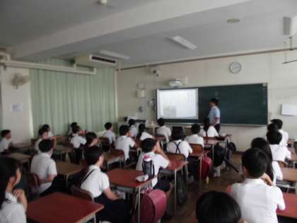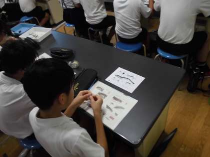 雨も上がった午後、6年生が菫中学校で次のような授業体験を行ってきました。