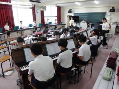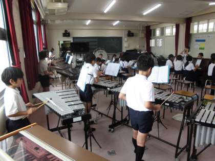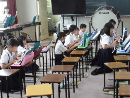 4年生が音楽科で合奏の練習をしていました。曲目は「マンマミーア」。鉄琴、鍵盤ハーモニカ、キーボードに分かれてパート練習をした後、合奏に取り組んでいました。まだまだ自分のことに精いっぱいですが、練習を重ねて素敵なハーモニーを響かせてくれることと思います。