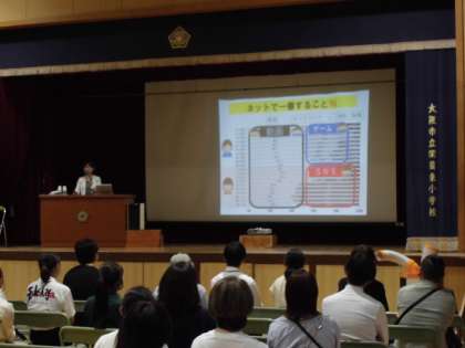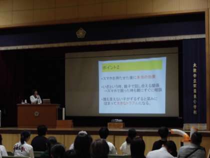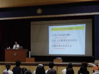 また、参観終了後、甲南女子大学講師冨田幸子さんを講師に迎え、本校PTA主催で「SNSとの関わり方」という演題で講演会を実施されました。