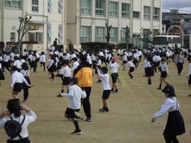 今日からなわとび週間が始まりました。今週は、1年生から3年生です。音楽に合わせて、前跳びや後ろ跳び、かけあし跳びなどをした後、チャレンジタイムで交差跳びや二重跳びなどに挑戦していました。なわとびが少しでも楽しくなって、運動する習慣が身についてくれればうれしいです。