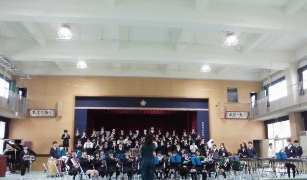 最後に、職員に向けて「パラダイス ハズ ノーボーダー」「ミッションインポッシブル」の合奏がありました。大規模編成の器楽合奏はとても迫力がありました。