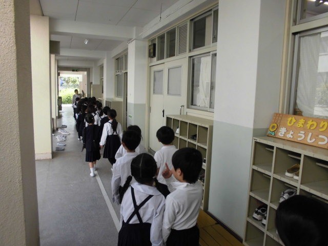 1時間目に、担任の先生と一緒に学校巡りをしました。校長室や職員室、保健室をはじめ、いろいろな場所を見て回りました。まだまだ知らないところもたくさんありますが、少しずつ慣れていってもらえればと考えています。