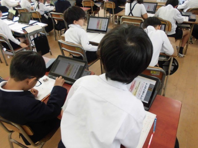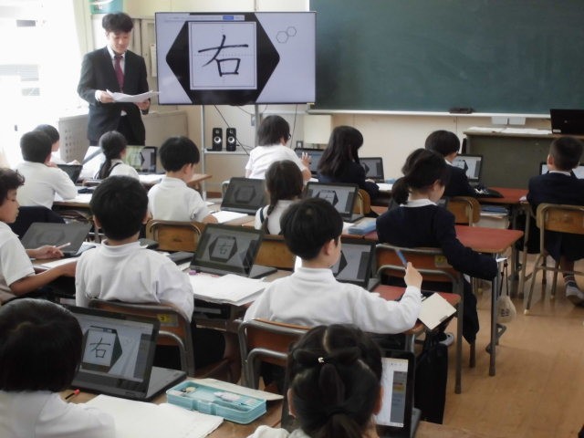 3時間目、タブレットを使って漢字の学習をしていました。学習のめあては「漢字を上手に書けるようになるわざを見つけよう」です。どうやら「わざ」は全部で3つあるようですが、一つ目は「筆順」でした。実際に筆順をでたらめに書くと「書きにくい」「変な形になる」といった声が聞かれました。あと二つは見られなかったので、機会があれば子どもたちに聞いてみようと思っています。